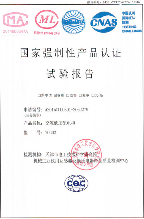 YGGD2交流低壓配電柜(試驗(yàn)報(bào)告)