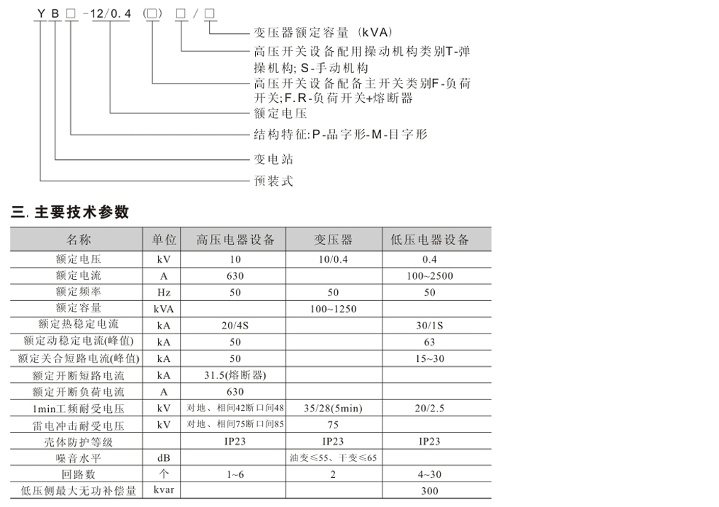 YB口-12/0.4(F.R)/T-口型戶外預(yù)裝式變電站