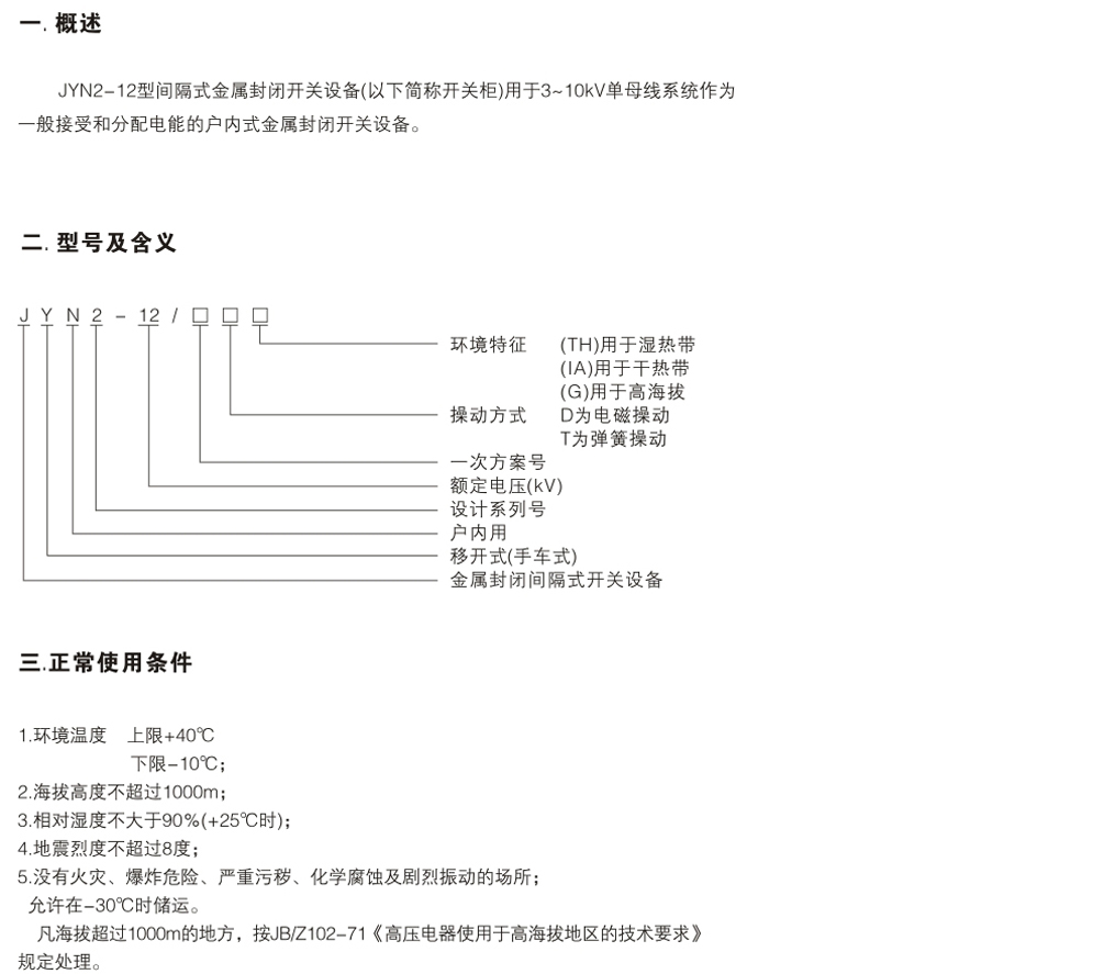 JYN2-12型間隔式金屬封閉開關(guān)設(shè)備