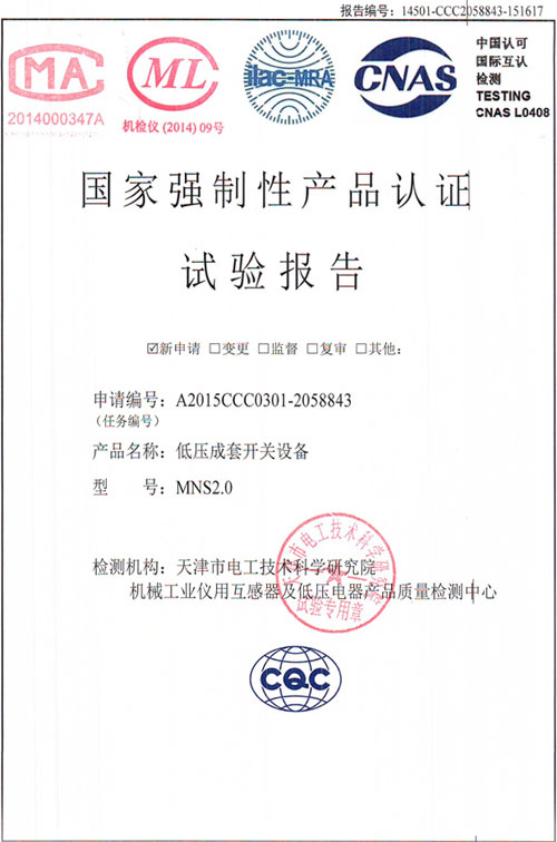 MNS2.0低壓成套開關(guān)設(shè)備(試驗(yàn)報(bào)告)