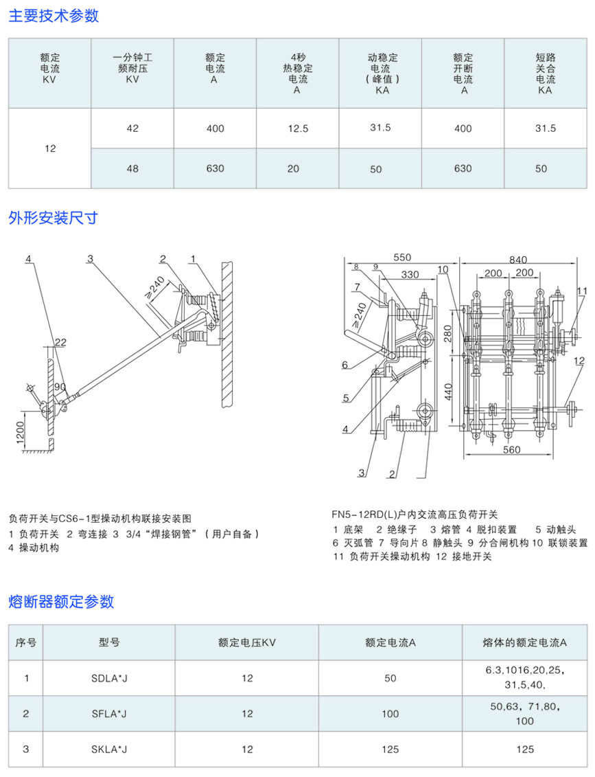 FN5-12系列戶內(nèi)高壓負荷開關及熔斷器組合