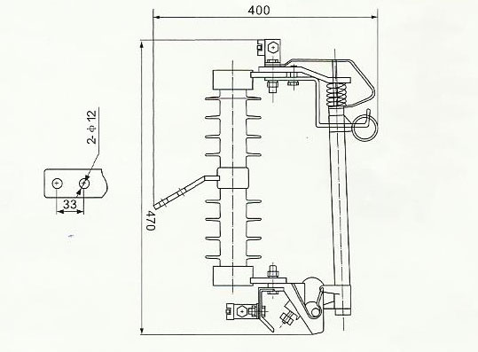 熔絲管兩端的動觸頭依靠熔絲(熔體)系緊,將上動觸頭推入"鴨嘴"凸出部分后,磷銅片等制成的上靜觸頭頂著上動觸頭,故而熔絲管牢固地卡在"鴨嘴"里。當(dāng)短路電流通過熔絲熔斷時,產(chǎn)生電弧,熔絲管內(nèi)襯的鋼紙管在電弧作用下產(chǎn)生大量的氣體因熔絲管上端被封死,氣體向下端噴出,吹滅電弧。由于熔絲熔斷,熔絲管的上下動觸頭失去熔絲的系緊力,在熔絲管自身重力和上、下靜觸頭彈簧片的作用下,熔絲管迅速跌落,使電路斷開,切除故障段線路或者故障設(shè)備。