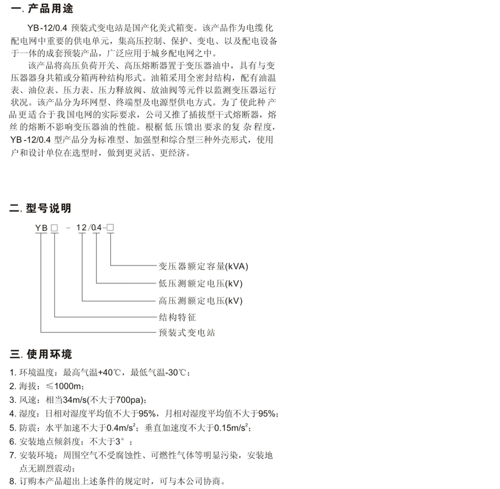 YB-12/0.4-口型戶外預計式變電站(美式)