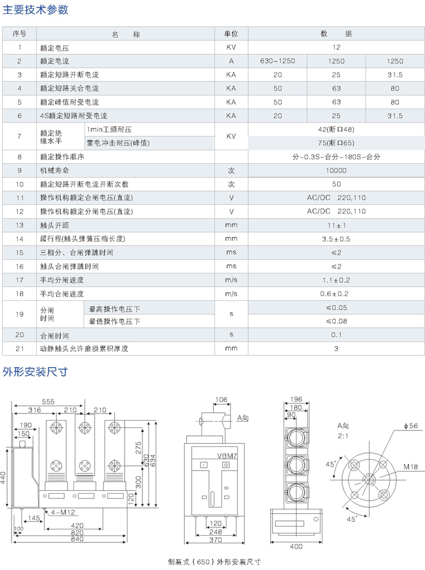 ZN63(VBM7)-12側裝式戶內(nèi)真空斷路器